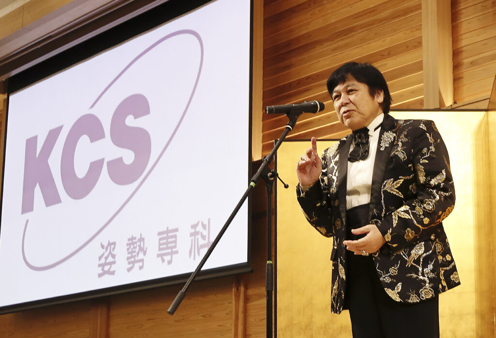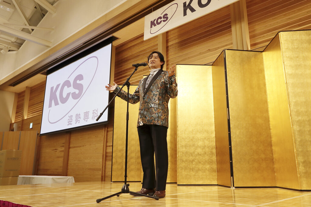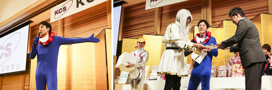 なごやかなご会食とご歓談の時間に、当グループ代表がご来賓に施術をして来賓席が驚きとよろこびに溢れた一コマもありました。こうした交流が深まり会場の空気が一層温まったところで、KCS大忘年会名物の「芸能部」がスタートしました。歌や踊り、伝統芸能、寸劇、なんでもあり。ベテランから新人まで、全国の会員が7組に分かれて、この日のために練習を重ねたライブパフォーマンスが会場に明るい華を添えました。