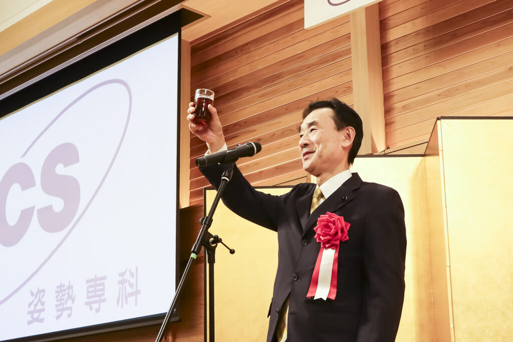 開会あいさつでは、当グループ代表 桑岡俊文が有名アニメのエピソードを交えながら、重要な局面で一歩を踏み出すために必要な「覚悟」と「勇気」の大切さを語りました。続いて、ご来賓を代表して前衆議院議員 橋本岳先生にごあいさつを頂戴しました。その後、岡山県議会議員 小田圭一先生による乾杯のご発声をもって、今年の大忘年会が晴れやかにはじまりました。
